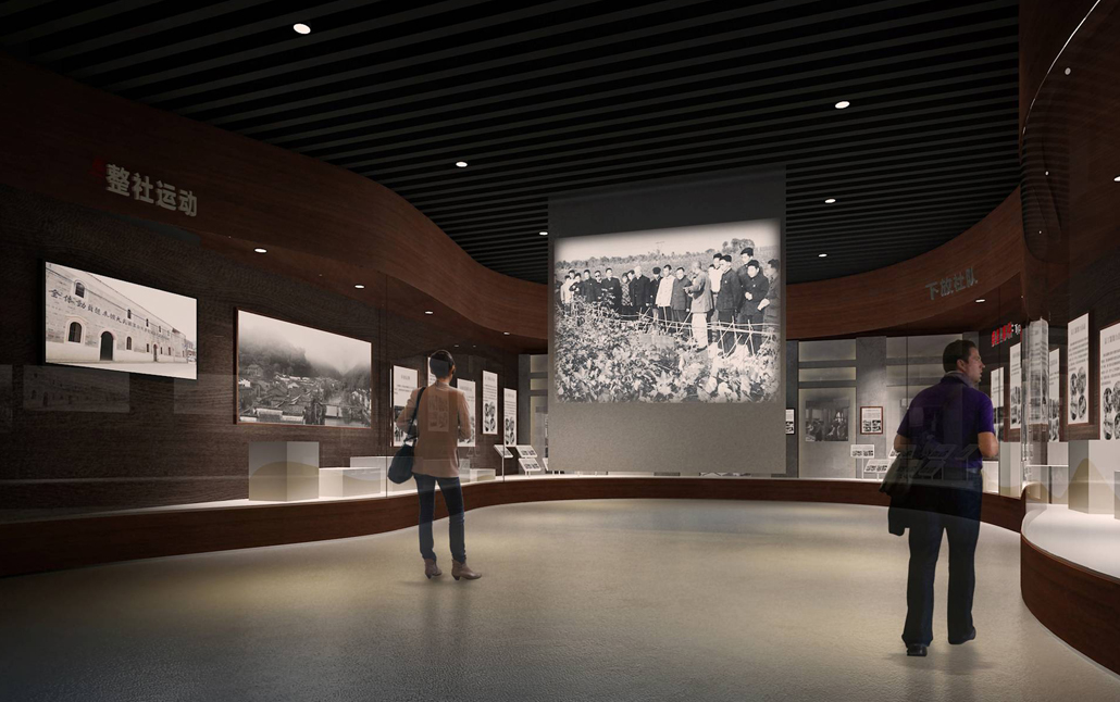 行史館展館設(shè)計(jì)的線路還有一種是環(huán)形 線路,這是很多展館普遍采用的線路,出入口在同一側(cè)。環(huán)形流線的展廳,布局較為復(fù)雜與理想的參觀路線,是能使得參觀者按時(shí)針?lè)较虮橛^整體,又聚焦于某處中心位置。